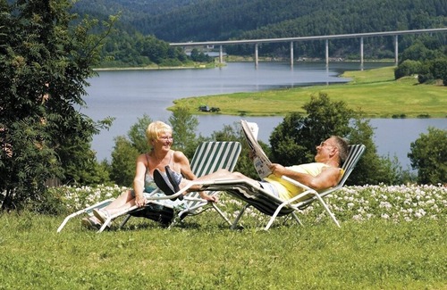 Ein Paradies nicht nur für Naturfreunde... Genießen Sie Ihren Urlaub in diesem 4-Sterne Appartement (DTV) im Herzen der Oberpfalz am Tor zum Bayerischen Wald - eingerahmt von Wäldern, Wiesen und Feldern direkt am Eixendorfer See. Das Appartement ist aufgeteilt in ein Schlafzimmer mit Doppelbett und einen Wohnschlafraum mit gemütlicher Couch, Essecke und voll ausgestatteter Kochnische. Das Bad verfügt über Dusche und WC. Telefon, TV und Internetzugang vorhanden. Der Wellnessbereich im Haus mit Sauna, Sanarium und Dampfbad lädt Sie ein Ihre Seele baumeln zu lassen und wieder Kraft und Gelassenheit für den Alltag zu schöpfen. Unsere hauseigenen Bowlingbahnen, die jederzeit von unseren Hausgästen reserviert werden können, bieten Spaß für Jung und Alt.