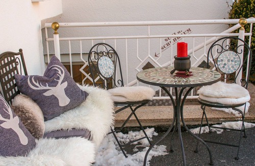 "Apart Garni Royal", 4-room apartment 70 m2 on 1st floor. Cosy and wooden furniture furnishings: 1 room with 1 double bed, hand-basin and satellite TV. 1 room with 2 beds. 1 double bedroom with shower/WC and satellite TV. Exit to the balcony. Kitchen-/living room (oven, dishwasher, 4 ceramic glass hob hotplates, kettle, electric coffee machine) with dining table, satellite TV. Exit to the balcony. Shower, sep. WC. Heating. Balcony. Balcony furniture. Beautiful panoramic view of the mountains and the valley. Facilities: safe, baby cot. Internet (WiFi, free). Please note: one double bedroom is outside the apartment. Non-smokers only. Smoke alarm, fire extinguisher.