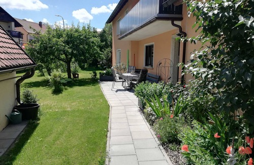 Welcome to the Hentschel / Polster family in the idyllic village of Haidhof. Our cozy non-smoking apartment (about 55sqm) on two floors, is renovated and refurbished. It can accommodate 1 - 4 people. Right next to the entrance is a partially covered, newly built terrace with seating area and spacious garden, which invites you to relax and unwind. A PWK parking space is also available. Every Friday we have fresh, home-baked wood-fired bread. For breakfast you can enjoy fresh eggs from our free range chickens. If you prefer to be pampered during your holiday, you are welcome to request breakfast in the neighboring Hotel Schloßberg on request. The Hotel Schlo��berg in Haidhof will be happy to serve you every day with delicious, home-made, Franconian specialties and other culinary delicaciesWe look forward to seeing you!