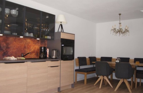 Our apartment is equipped with hall, 2 bedrooms each with 2 beds (in one bedroom possible 3) a cozy living room and kitchen (with electric stove, combi microwave / grill, dishwasher, fridge), bathroom with shower and sink, separate toilet, Balcony (10M2) to the south side with wonderful views of the Hohe Salve and its ski slopes and hiking trails. In the summer there are, limited possibilities to use in agreement the swimming pool and the garden.