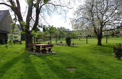 Quiet three star apartment in Schnaittach. The place is very central. Numerous cities such as Nuremberg and Bayreuth are easy to reach. The apartment has two rooms and is 58 square meters in total. The kitchen with seating for two is equipped with a fridge, stove, oven, kettle, coffee machine, blender, microwave, toaster and vacuum cleaner. In the cozy living room there is a dining table with four chairs, a sofa, two armchairs, a glass table, a sideboard with newspapers, books and games, TV and a bed (90 x 200cm) with a bed box. In the bedroom you will find a five-door closet with mirrored door, clothes rack, double bed (200 x 200 cm) and chest of drawers. In the bathroom there is a shower, bathtub, sink with mirror, stool and a towel rack. In the hallway you will find a cloakroom with a full-length mirror. The highlight of the apartment is the terrace with two chairs, a bench and a table where you can end your evenings. In summer there are two loungers with a side table. There is a children's swing in the garden for the little ones.