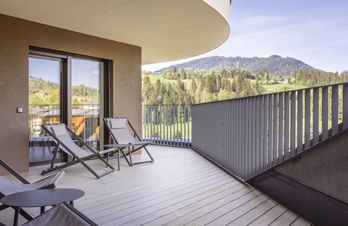 This spacious 86m² apartment comfortably accommodates up to 7 guests. It features 2 bedrooms, 2 bathrooms with a shower and WC (hairdryer provided), a living-dining area with a kitchenette, and a large 32m² terrace. Enjoy restful sleep in the comfortable double beds, and the 50m² living area includes a double sofa bed for 2 additional guests. A single sofa bed is prepared in one of the bedrooms for the 7th guest. Free Wi-Fi is available at Brixental Suites Hopfgarten. Each apartment is individually furnished, with the photos shown as examples. The Brixental Suites Hopfgarten are located in Hopfgarten im Brixental, Tyrol, directly on the piste (Ski-in/Ski-out). The property is just a few meters from the Hohe Salve valley station and includes the Kitzbüheler Alpen guest card. A free underground parking space is also available for guests. The fully equipped kitchenette offers all necessary utensils, a ceramic cooktop, oven, refrigerator with freezer compartment, and dishwasher, along with a toaster, kettle, and Nespresso coffee machine. A small starter kit with dishwashing tabs, detergent (20ml), a sponge, trash bags, and cleaning and dish towels is provided upon arrival.