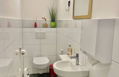 This 1-bedroom, 1.5-bathroom rental features a living room and a dining area. Bathroom amenities include a hair dryer, towels, and toilet paper. The kitchen is equipped with an oven, a stovetop, and a refrigerator, as well as a coffee maker, an electric kettle, and a microwave. And you won't have to pack extra clothes, because you'll have a washer and dryer, too.