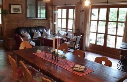 Sachrang - A village in the mountains and backdrop for numerous films and television productions and a mountaineering village. Our holiday home "Granizhuber Alm" is idyllically located on a small private natural lake with many protected plants and animals. A gem in which every guest is sure to find peace and relaxation on vacation. The spacious open living/dining area with fireplace offers plenty of space. Three terraces invite you to relax and enjoy. In winter, 3 smaller ski slopes in the immediate vicinity offer the opportunity to try out skiing and snowboarding for the first time. The ski areas Kampenwand in Aschau, Steinplatte in Reit im Winkl and St. Johann/Tirol are within a 45 km radius.