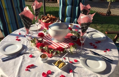 Bei Ihrer Ankunft erwartet Sie im Kühlschrank ein Willkommensgruß (1 Fl. Sekt und 1 Glas hausgemachte Marmelade). Zur Ausstattung gehören ein Schlafzimmer mit Boxspringbett (Kingsize-Größe 2,00 x 2,00m) sowie ein Schlafzimmer mit Einzelbett (1,40 x 2,00m) - alle Betten haben eine Höhe von 55 cm! Daneben gibt es ein Bad mit Badewanne und Dusche und WC, ein Wohnzimmer mit bequemer Sitzecke und Sessel, Flaschbild-TV, Kaminofen incl. und einen separaten Eßplatz mit Schwingstühlen sowie eine vollausgestattet Küche, damit Sie Ihren Liebsten verwöhnen können :-) Ein Freisitz mit Gartenmöbel laden Sie ein für schattige Stunden . Selbstverständlich werden Ihnen Hand- und Duschtücher sowie Bettwäsche gestellt. Zur Sicherheit Ihrer Unterlagen ist ein abschließbarer Safe installiert. Folgende Angebote haben wir für Sie arrangiert: Brötchen- und Getränkeservice Parkplatz vor dem Haus WLAN kostenfrei in allen Räumen. Grillmöglichkeit im Freien möglich, Waschmaschinen- und Trocknernutzung gegen Gebühr Bügeleisen und Bügelbrett vorhanden Brettspiele und Bibliothek und natürlich ein großer Balkon mit Gartenmöbel und Sonnenschirm dekoriert.
