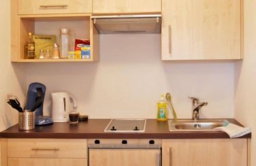 "Lunapart", 2-room apartment 25 m2, on the ground floor. Simple and modern furnishings: 1 room 15 m2 with 1 double bed, TV and radio. Small kitchen-/living room 7 m2 (4 ceramic glass hob hotplates, kettle, microwave, electric coffee machine) with dining table. Shower/WC. Oil heating. Carpet. Facilities: safe, baby cot. Internet (WiFi, free). Please note: maximum 1 pet/ dog allowed. Smoke alarm.
