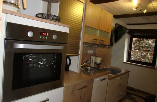 on the ground floor. You can heat the stove yourself - for romance (the central heating is of course also there!) Satellite TV and Internet (WiFi) are a matter of course. Fully equipped, modern kitchen u. a. with stove, coffee machine, refrigerator, dishwasher, microwave etc. leaves nothing to be desired. Travel cot and high chair, various Bikes on request. Lots of books, games, puzzles, lots of suggestions, maps, guides for excursions on site u. in the nearby areas. Restaurants within walking distance, attractive all year round. Covered pavilion in the large garden with garden furniture, children's toys, swing and grill is very cozy, pond with water lilies and fruit in the garden
