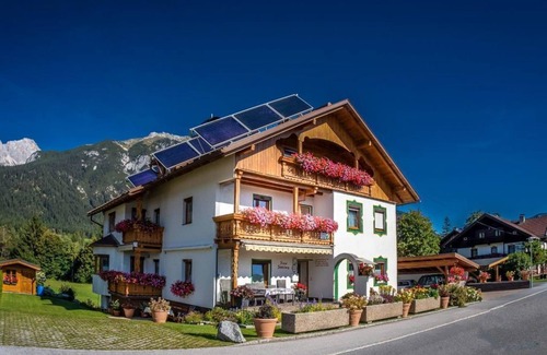 Located in the sunny, south-facing upper part of the valley, at the entrance of Gaistal. Trail entrance at 100 meters distance. Supermarket in the immediate vicinity. Five apartments - all with balcony - no carpets. Flat screen TV with digital TV and radio reception. Carport, use upon availability. Free admission to the Alpenbad from May to October (5 hours per person per day) In winter, the ski pass and the regional bus ticket are included in the price of the apartment. Wi-Fi for free Charge: Infrared cabin Predicated by the association of private landlords.