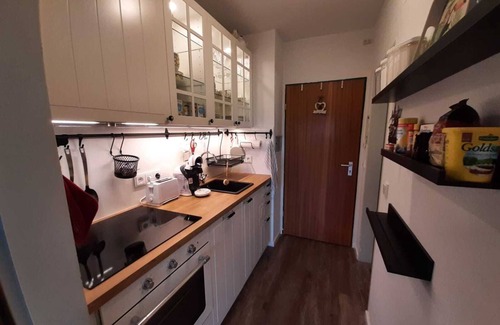 Feel free to prepare a home-cooked meal with the oven, stovetop, and refrigerator, as well as the coffee maker, microwave, and cookware/dishes/utensils. Bathroom amenities include a hair dryer and towels. And thanks to the washer and dryer, you'll even be able to travel light. Other amenities include a sofa bed, bed sheets, and heating.